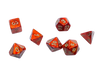 Contains 7 Scarab Scarlet Dice with gold numbers in the following Shapes: