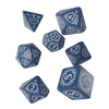We made noble blue dice with white paintings in deeply-carved ornaments that, like pure soul, can survive everything. On the highest face, we engraved the Silver Raven, the sigil of the secret do-gooder's organization from the evil city of Kintargo. There are more small, smaller, and tiny ravens on this dice because true revolutions need symbols. Each of these 7 revolutionary dice bears designs suggestive of noble inspirations and true liberty!